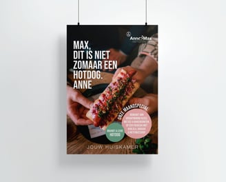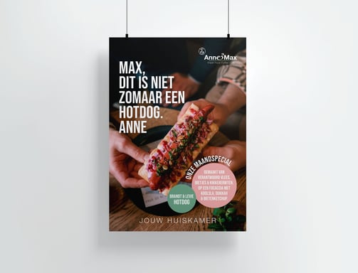 Voor Anne&Max heb ik de campagne ontwerpen van De Brandt & Levie Hotdog ontworpen. Het is een mooie samenwerking tussen Brandt & Levie en Anne&Max met een gezamenlijk doel om bewuste en duurzame keuzes te maken voor minder en beter vlees. Voor de campagne heb ik posters en tafelkaartjes voor in de vestigingen ontworpen.