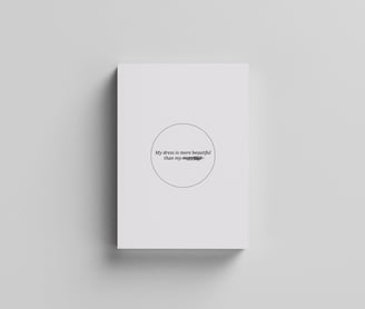 Op Marktplaats worden veel bruidsjurken aangeboden, maar de gezichten op de foto's zijn altijd verborgen. Het boek is helemaal wit om de inhoud te verbergen. Je moet de pagina's aan de zijkant openscheuren om de binnenkant te bekijken. Dit symboliseert tevens de manier waarop iemand een foto verscheurt als de relatie eindigt.