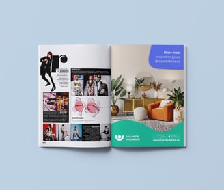 Voor Linda. Magazine lichten we elke maand andere content uit, voor deze editie ligt de focus op interieur. De confetti verschilt per maand en is organisch in gebruik, ook de kleurstellingen zijn aan te passen aan het onderwerp. Het feestelijke en organische gevoel van winnen wilden we terug laten komen in de advertentie.