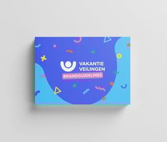 Bij VakantieVeilingen staat fun en het spel van het bieden tot winnen centraal. We hebben een brandboek gemaakt waar onder andere de visie, missie en visuele identiteit van VakantieVeilingen wordt gecommuniceerd in de sprankelende kleuren met uitvergrote confetti als elementen.